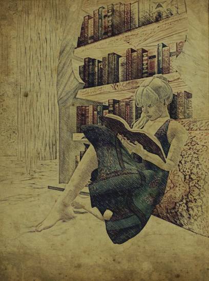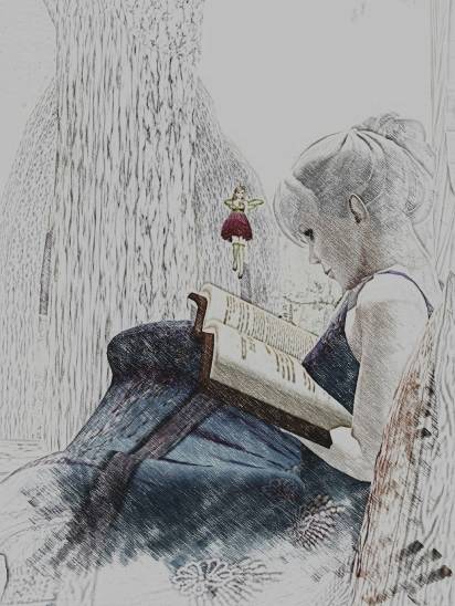 But there’s plenty of time for digressions about what I’m reading. The fact is, I’d been there for hours and I realised when I looked up that my back was beginning to ache and my bum was sore from sitting on the floor for so long. Yes, of course there are chairs in the archive, but they are farther away from the bookshelves. Anyway. I heard a sneeze, and I looked up to see the loveliest little demi-fae you can imagine floating there. I think she’d got a whiff of pollen or something.