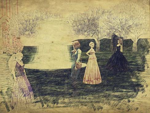 Down the slope from the trail that leads up to the sithen entrance, there is a lovely pond; I know it and I’ve walked that area before. I was surprised to see a campfire down the hill as I walked back to the sithen, and I heard a very familiar voice, so I made my way down the hill to find the Prince, Aoibheann, and Astrid enjoying a chat around a campfire. The Prince seemed disproportionately worried that we were all out wandering the woods in the dark; he typically also made some remark about how he drew women to himself. Then he told Aoibheann that he would not be deflowering her that night (?!) and apologised to her. I just gaped; the gods know what he’d been telling her up to the point Astrid arrived with a dose of common sense and civility. I know most fae don’t think much of humans, so I figured he was having a little fun with a poor lost human– and if the lost human happens to be my best friend, I get angry. So I just started throwing questions at him to distract him from her, questions about sithen security and stuff, so that he’d feel all important for being asked. Aoibheann blurted out something I didn’t know: she’d made a deal with the Huntsman and had to answer any question he asked her truthfully, so it wasn’t a good idea to discuss sithen security in front of her. Oh, great. I could feel the Prince glaring at me.