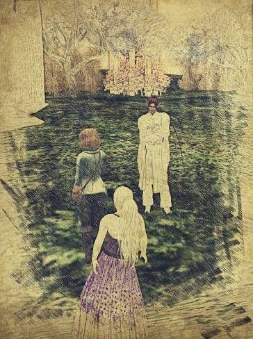 I was walking down toward the bridge, looking for Aoibheann and Nathaniel, when I heard voices. One of them sounded like Rachel, so I followed them to see what happened. And there I found Gabrielle, lying on the ground as if dead. Bella was there, and another demi-fae, and Rachel and Astrid, and some new guy I didn’t know who turned out to be an elf called Tristan. Anyway, it looked like Bella and Astrid were trying to revive Gabrielle, which is what you would expect to be happening. Tristan was just sort of standing there. Oh, yeah; the other demifae’s name was Bunny, I found out later. Gabrielle started coming around, and Rachel warned everybody to keep back. Rachel knows a lot about vampires, because she used to be one, of course, so everybody listened to her except Tristan, who looked at her as if she was a bit insane and didn’t move a muscle. Astrid and I actually went into the lake!