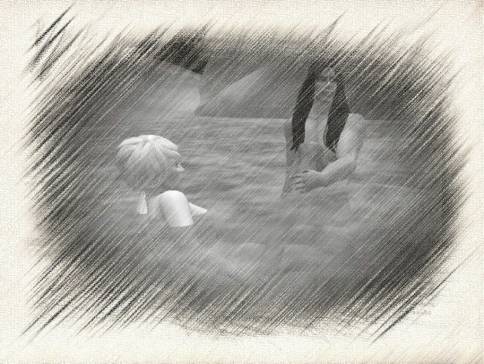 Anyway. We actually were closer together than this sketch shows: I don’t know how to draw us together. And I’m not comfortable drawing — yeah. On to what happened. We were, I don’t know, just finishing? (I would make a shitty porn writer!) We were just finishing, and he held me really tightly, and his heart. His heart was just hammering in his chest. His heart. Nathaniel is a vampire. I don’t think about it a lot. But it’s true. My boyfriend is a vampire. He is not alive in the same way he was born alive. He is undead. He is a very sexy creature from beyond the grave (I cannot believe I am writing this down). He knows how to make it look as if he is breathing. He drinks. He can pretend to eat, he says, when he has to (I have never seen him do this). But he does not actually have a heartbeat. I know from conversations with some folks both here and in Jasper Cove that some vampires can simulate a heartbeat, but Nathaniel doesn’t. He isn’t good at it, or that’s what he said. She used to refuse to take any kind of advice from him, because she felt he wasn’t a proper vampire somehow (probably because he hasn’t killed me yet; I don’t know). But something about that time, that moment, maybe the place, made his heart beat, in a natural way, like I imagine a living man’s heart would beat when he was agitated, or excited. Did we do that? I think we did. I think we somehow made that happen. Maybe I did it. Maybe I’m a goddamn fae defibrillator or something. Maybe she was right and Nathaniel really isn’t a proper vampire after all. Maybe he’s something different, something special.