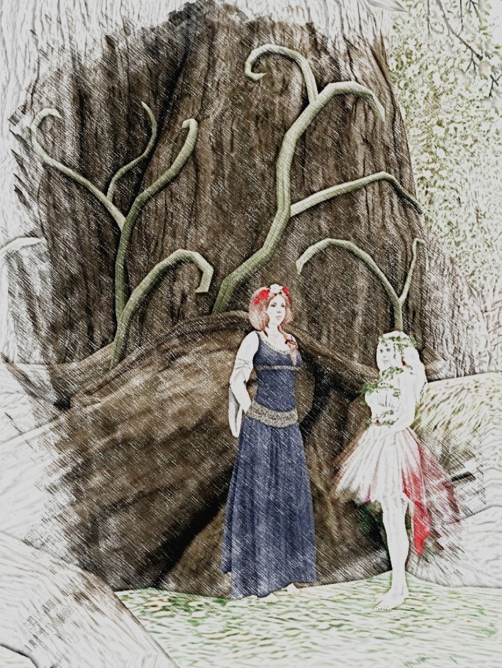 Search as he might, King Alec could not find Tabitha and her lover, whose name was never revealed. And so one day, he and Queen Isabella dressed Aoibheann and Gwyneth in flowers and claimed them as their own, making them equal Princesses of the Realm.