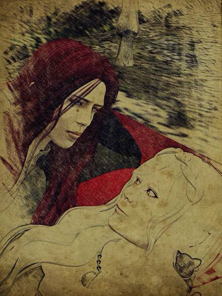 One of the things I really wanted to do was go back and sketch those photographs that appeared like magic and fell out of my journal that day, because, as predicted, the photos themselves began to disintegrate almost immediately. Some of them looked like they’d been printed years ago, and it didn’t help that the edges were already fraying when I pinned them up to copy them, and the light from the sithen seemed to make them turn to ashes even faster. In the end, I was not able to do all of them, so I picked my favourites and did those first.