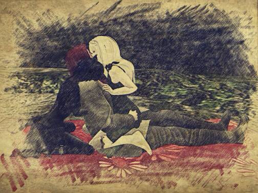 This is a sketch of me kissing Nathaniel while Valene holds him and nuzzles against both of us. I haven’t talked very much about this, because I don’t know how to talk about it. But there is nowhere I would rather be than with these beautiful people. Nowhere do I feel more secure and loved. Richard, wherever he is, would not know me now. He’d not recognise me. I’m another girl, in another world, and the world is made of love.