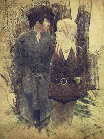 I also tend to draw what I know best. It takes several studies and some trial and error to get something new right — you don’t want to know how many crumpled up studies there were of the fucking bridge troll, for example. But I can draw Aoibh, Nathaniel, me, Blaise, and a few others straight from memory and put us anywhere.