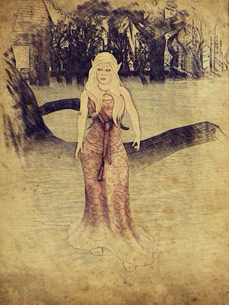 I’m trying to be more seemly, dress and act more like “a lady of the Sidhe,” as Galaddan and my father are always saying. So I grabbed one of the white ladies at the sithen, and she helped me pick out a dress made by the seamstresses there. The colour was good, but the strap was difficult to adjust, so I just pulled my hair over it. Nevertheless, when I went to look for Aoibheann at Ardan, she complimented me but then said I didn’t have to dress up just to visit her.
