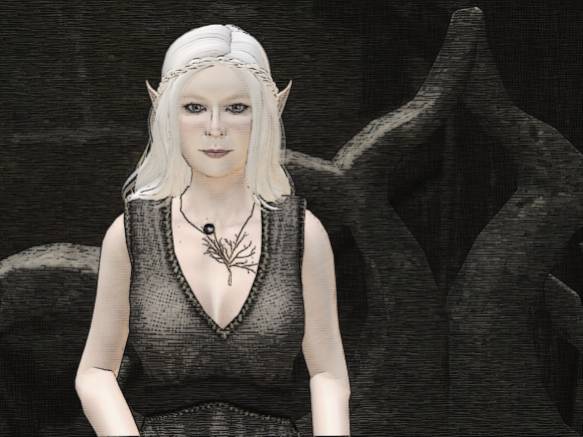 So today, I fled the disintegrating sithen and the sight of my people queuing up like lemmings to walk into oneness with the Mallorn tree, and even though Nathaniel was busy elsewhere and Aoibheann was nowhere to be found, I haunted the castle, looking for her. I ended up on the balcony, with a book, but I must have fallen asleep (it was dry reading, something about the history of the crusades– I just picked up the first book I touched on the bookcase), because suddenly she was just there, dressed as I remembered her from Jasper, crowned and queenly.