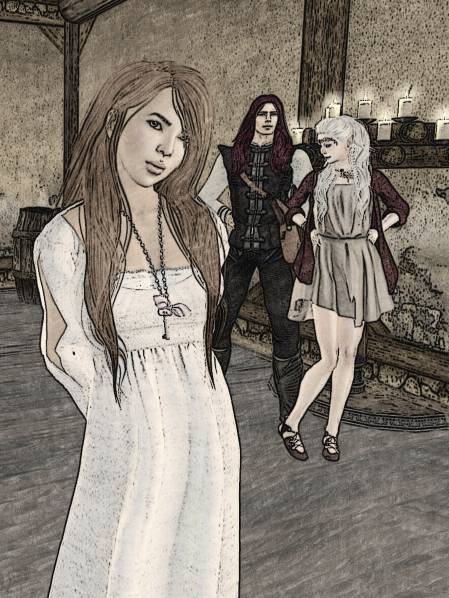We headed out of his cottage, only to be met by Galyanna and Orie. Galyanna said she had to speak with Nathaniel about something Super Sekrit and Private (fuck you, Princess!), so she’d send him along to meet us at the tavern later. Us? Oh, right.