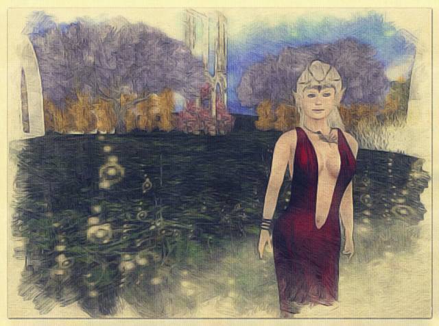 She said I looked good in red. I replied that it seemed appropriate, and I knew she knew what had happened to me. She reached out to touch, said she could feel his mark and his presence on me.