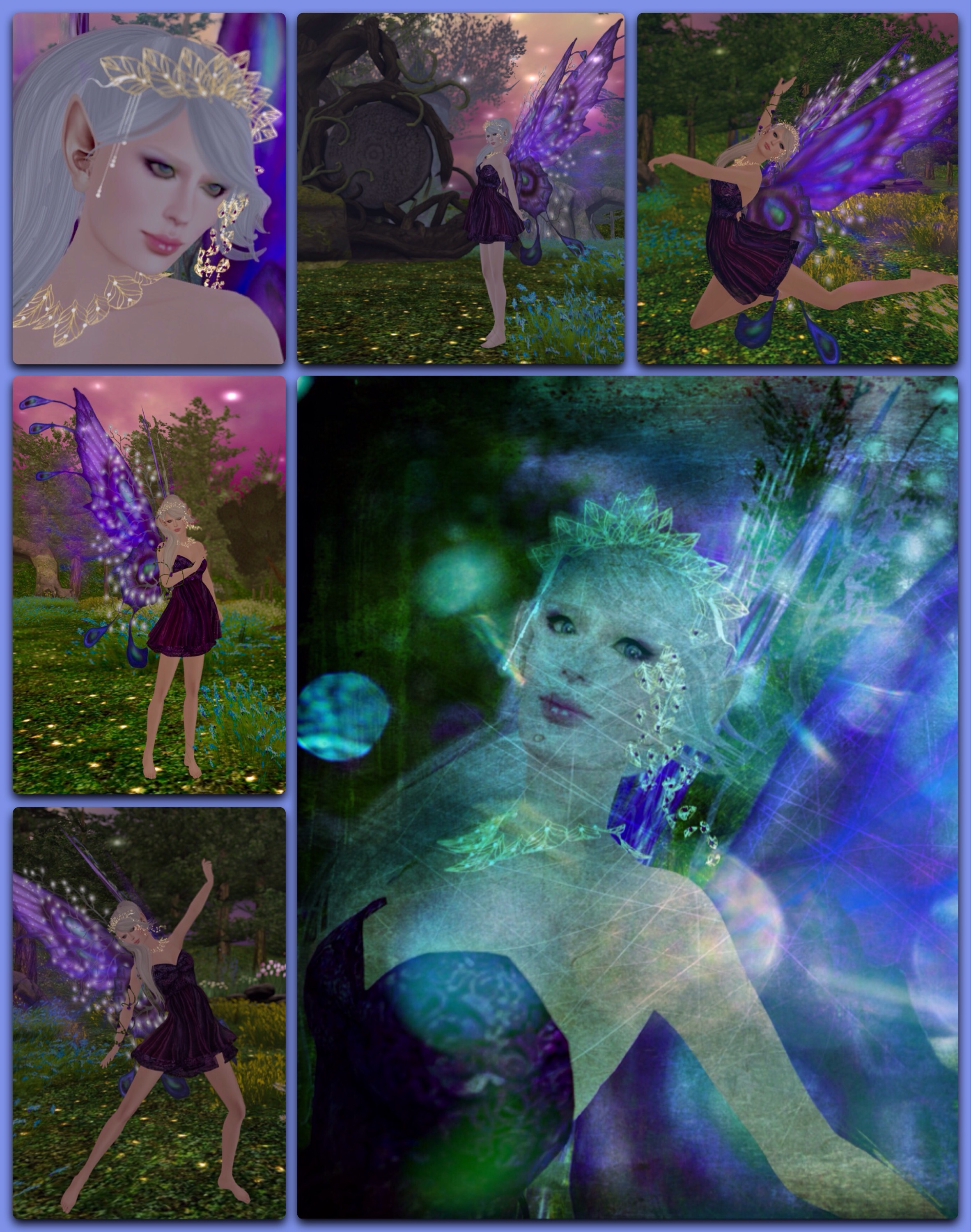 So here are a few shots of Gwyneth just posing and housing around in her bower. All but the obviously arted-up one are filterless, shot with graphics customised in Firestorm’s Phototools (set to “stupid”, for those of you who have me geek about this before), cropped in Photos on my iPad. Collage created in Photostein, though it’s not the only village app I use. Obviously arted-up photo uses DistressedFX, which I chose (and paid for!) because the app developer is a Second Life content creator.