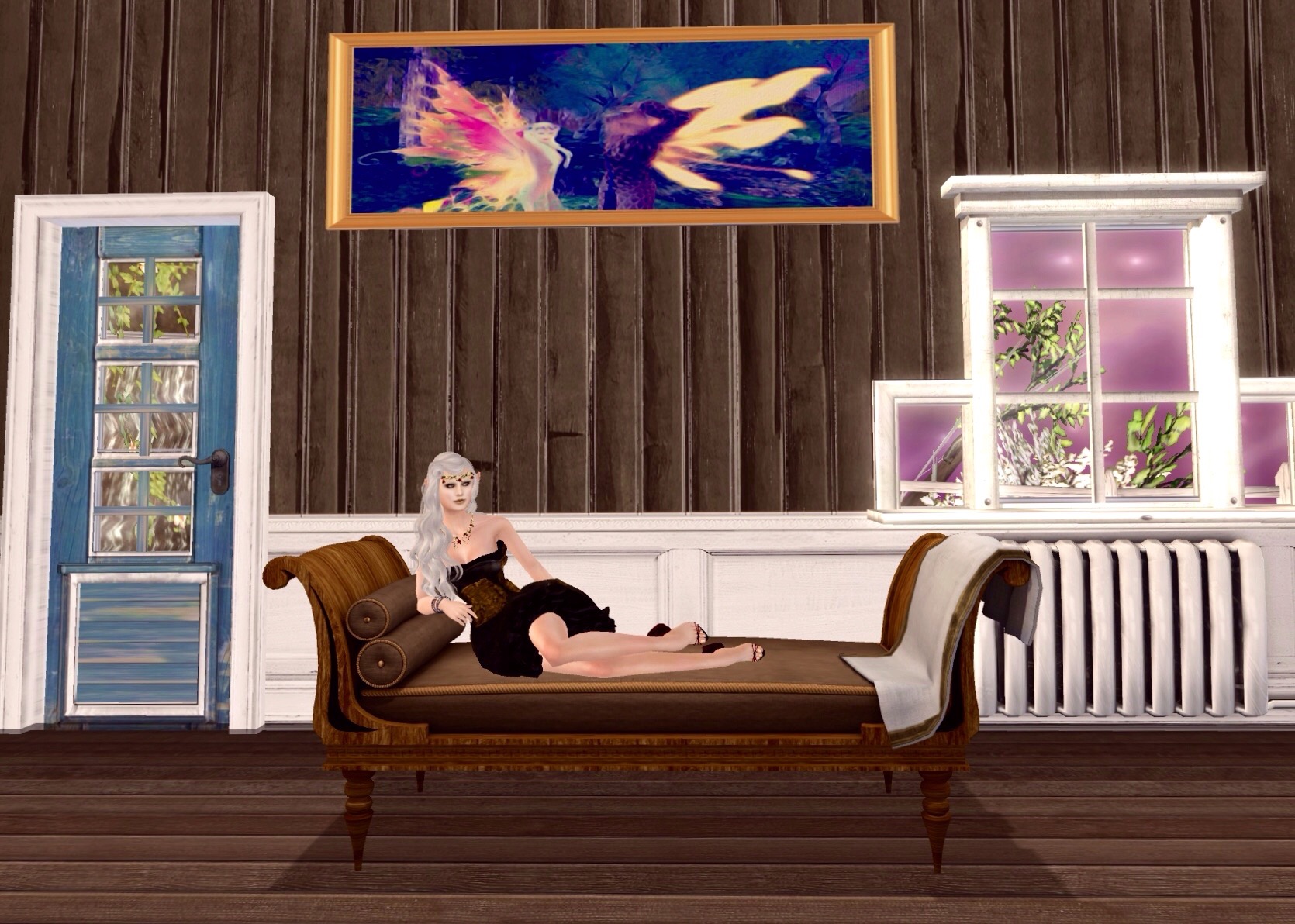QG: [laughs] Well, the whole of the house really is my space, you know. I have privacy when I want and need it, and the house itself is a magical thing: I’m positive it has a life energy of its own. It did, after all, grow itself from the tree in which it’s situated. But you’re right: because I didn’t grow up as a Princess and spent most of my years before finding Faerie as an academic, my idea of a comfortable space might be a little different from that of other Royals. There is a lovely balcony off this room, though: come through, and I’ll show you some of the outside bits you were curious about earlier.