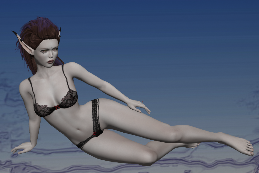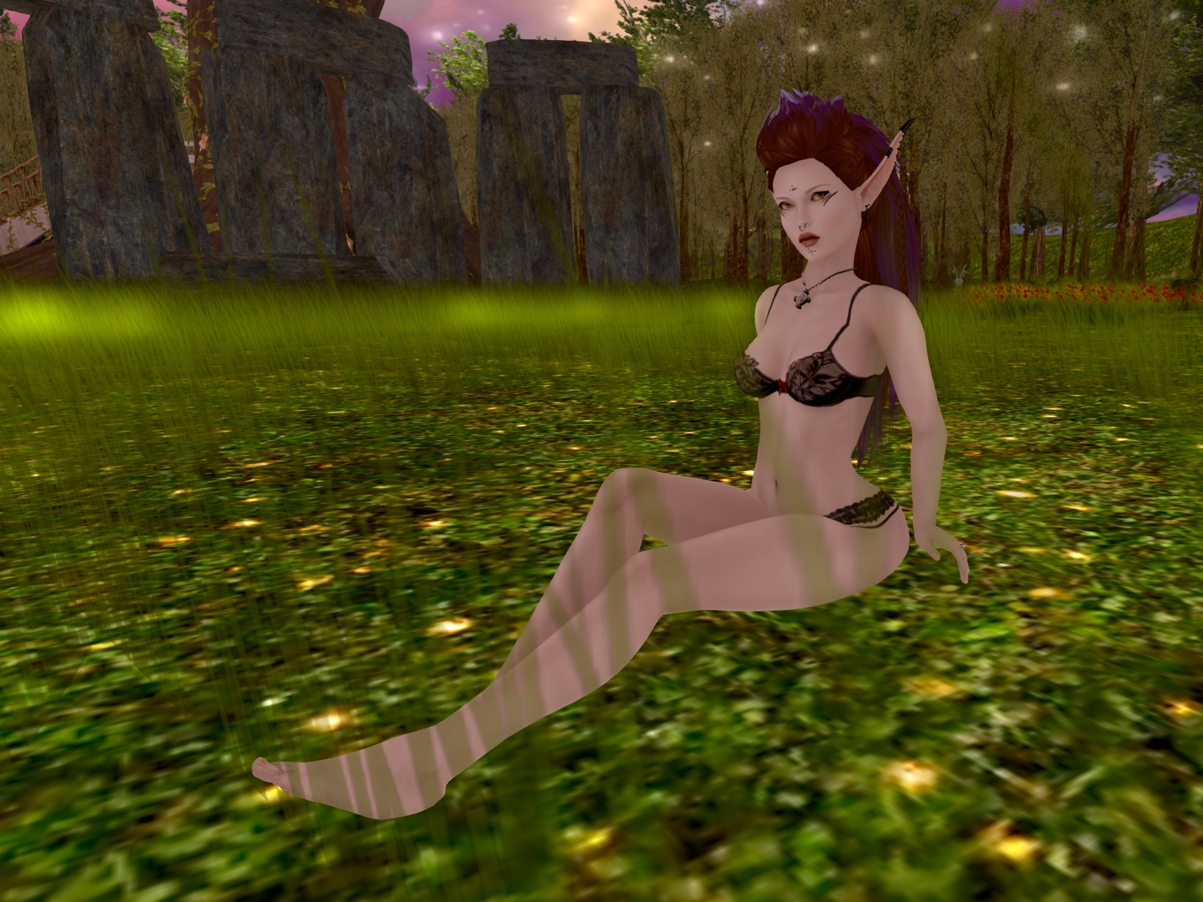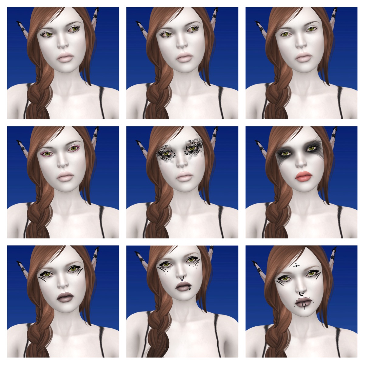 Change eyelashes or tint them, remove them altogether. The last four pictures here are about playing with some of the Glam Affair appliers to give TAC a unique look. One of the things I worried about before getting a mesh head was whether my avatar would now look “the same as everybody else”. And there is a generic quality to the face that falls within the realm of what’s currently popular on SL, particularly the lips. So I thought about TAC. Who is she? Mostly, she’s a doll I dress up and take photos of, but who is she really? What’s her style? Let’s see. She has long, pointy ears with plenty of metal in them. What about facial piercings to carry that look over on to her face? She favours trousers over skirts and is often posed with a bow or other weapon. She might really be a complete badass. Which means she needs badass hair. Truth, as ever, delivered! I put her in Rogue, coloured it half purple, and voila! Instant badass!