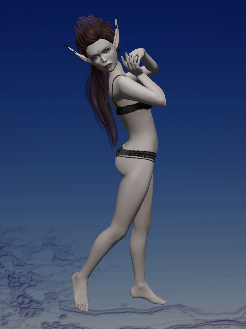 Now, to tell you the truth, The Amazing Catwoman started out as just a photo personality. Her shape was exactly the same as Gwyneth’s, except she had a very different skin, wore different clothes, and carried weapons from time to time. But she’s become much more than that: she’s sort of my adventurous, edgy alterego, I guess, whereas Gwyneth is really much more me in so many ways. But enough philosophising. I widened her hips, gave her a little more in the tit department, increased her leg and torso musculature, broadened her shoulders, and shortened her down to normal woman height rather than Gwyneth’s willowy Sidhe height.