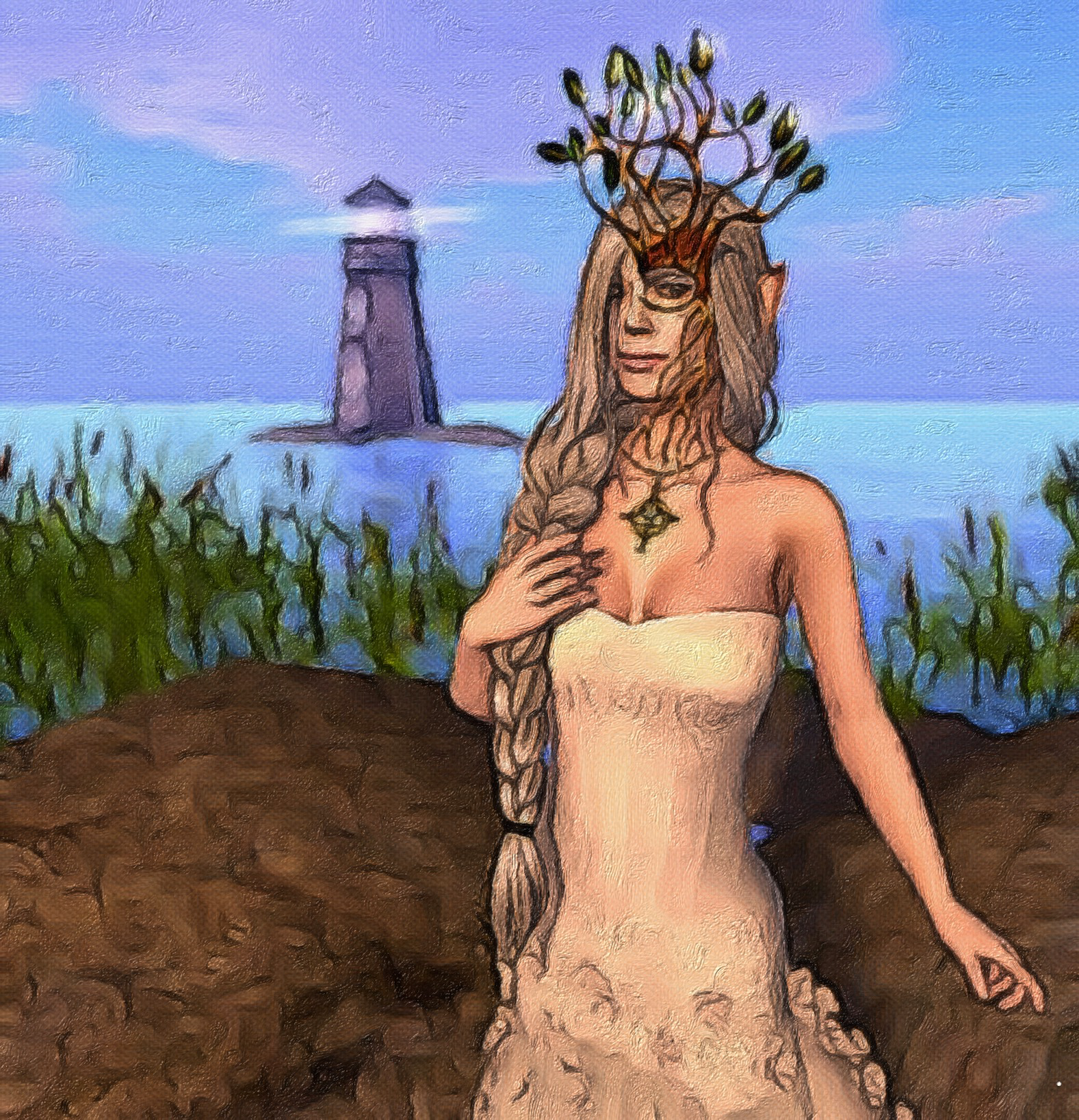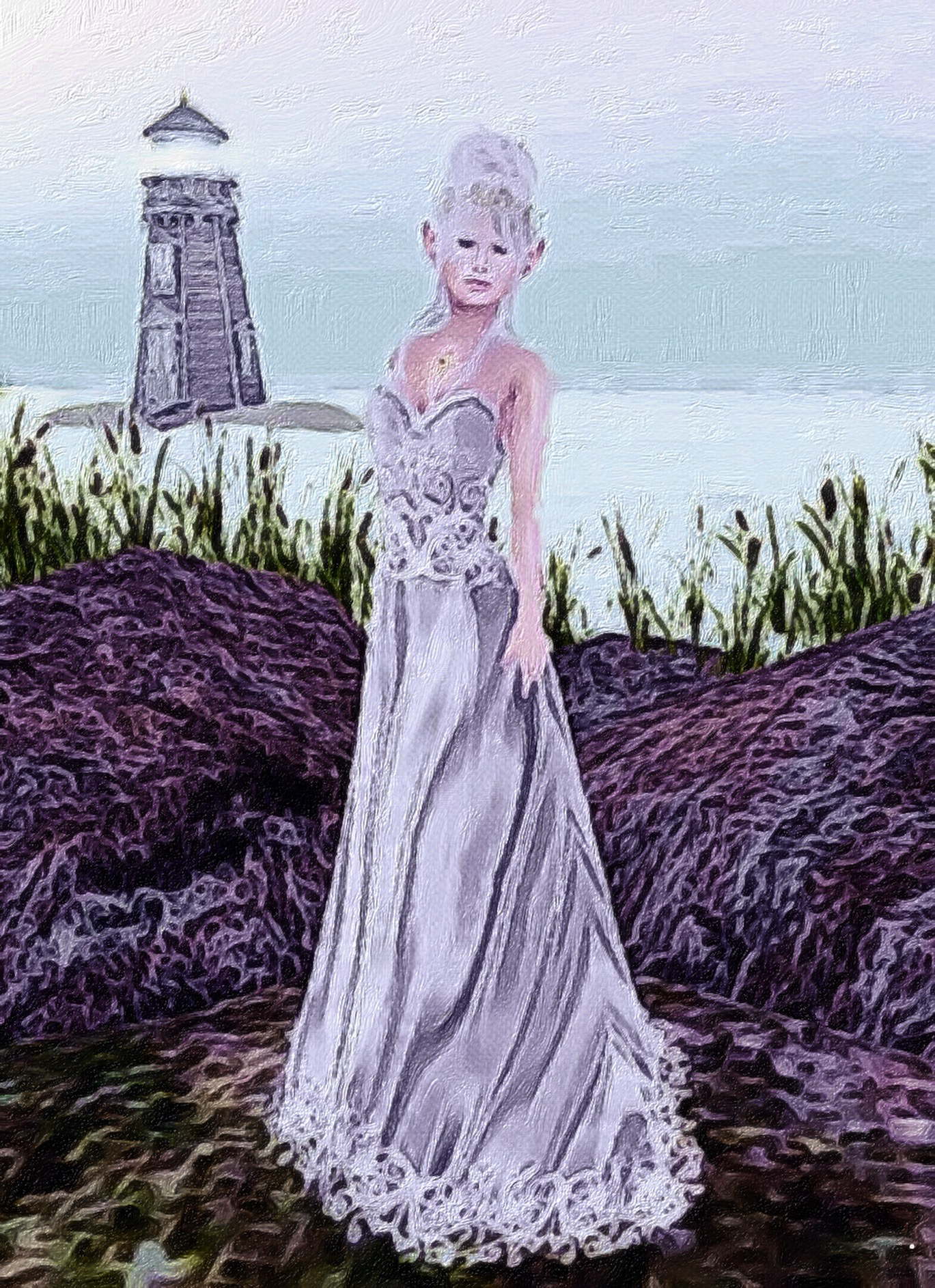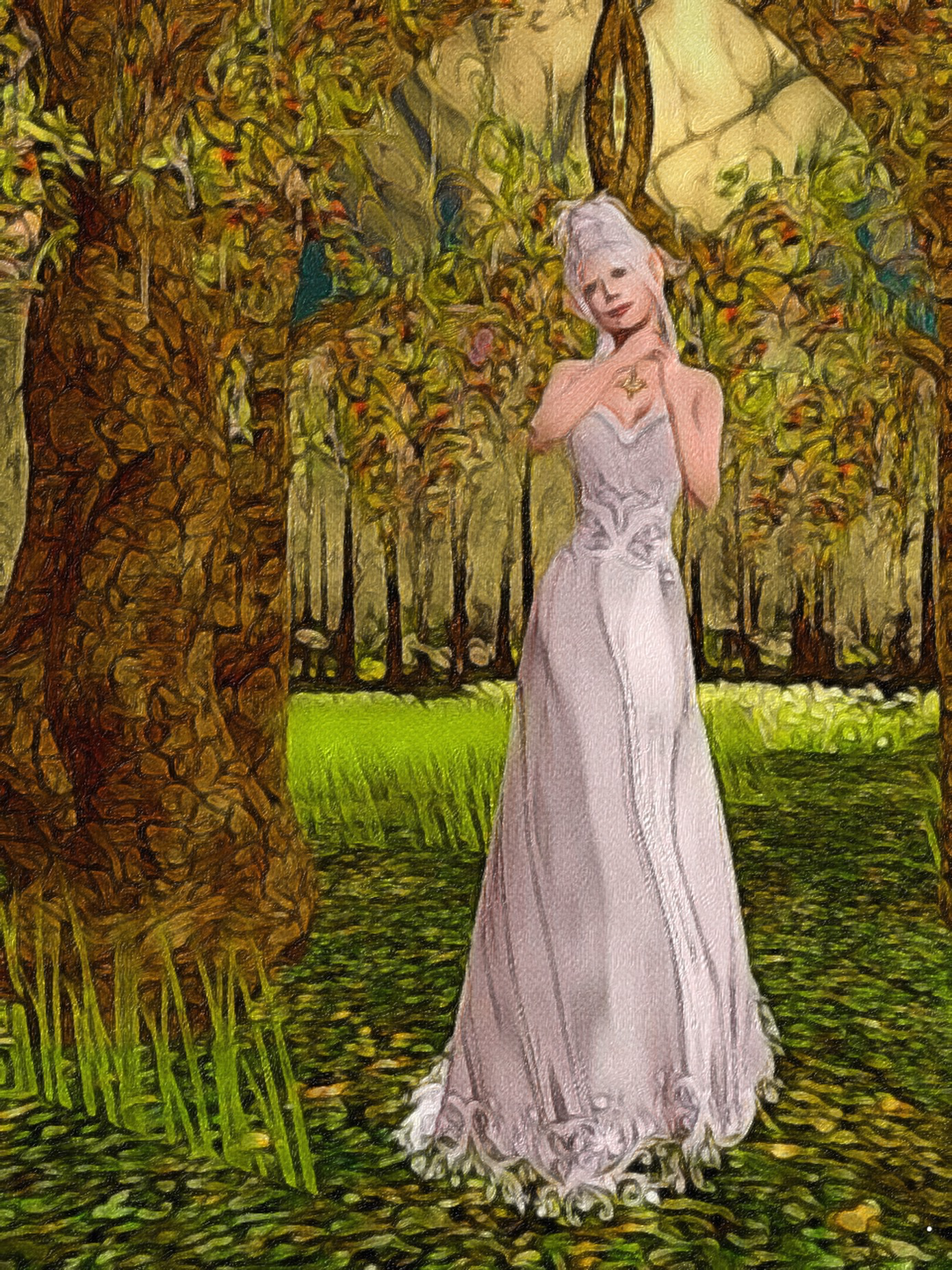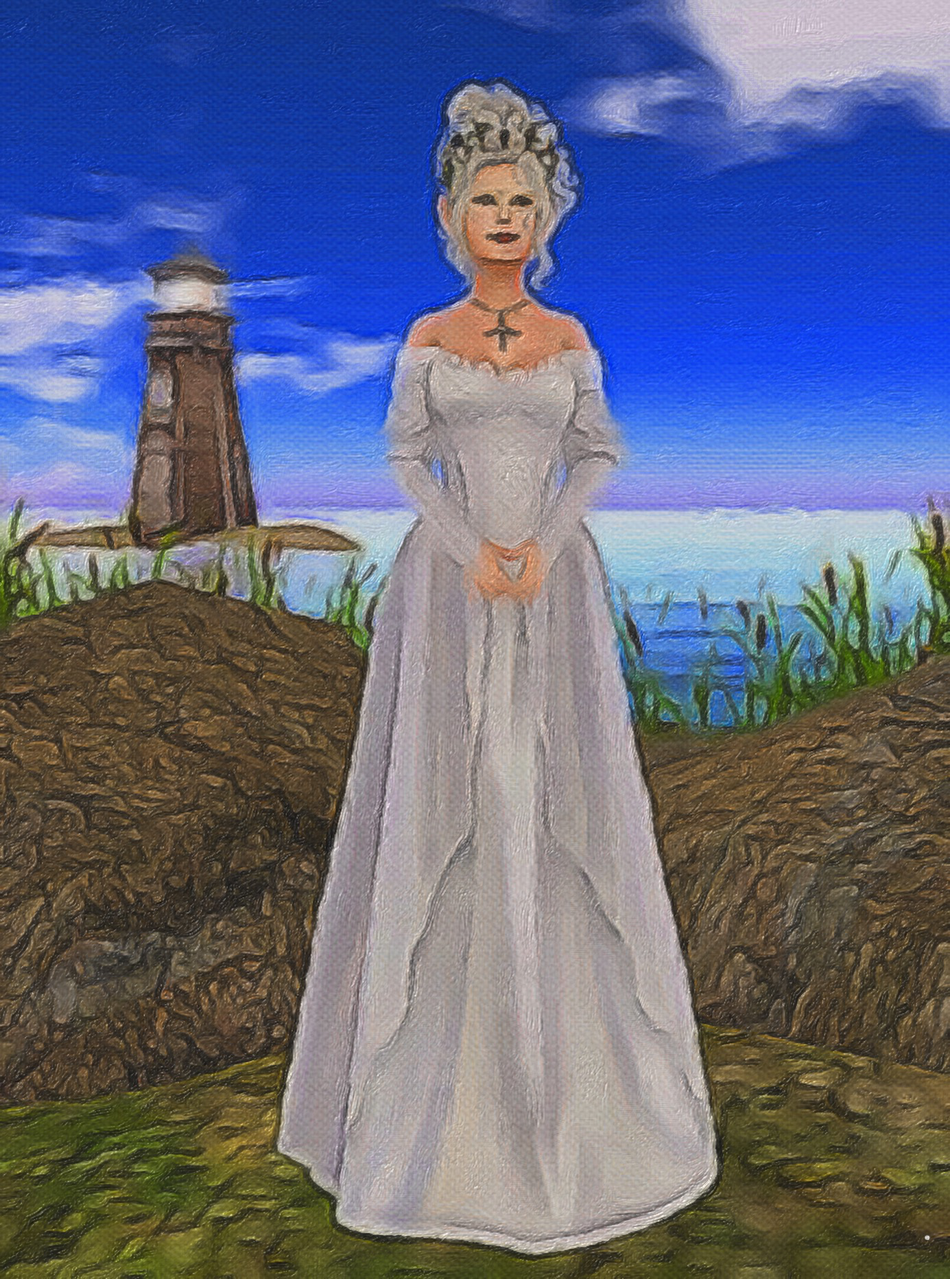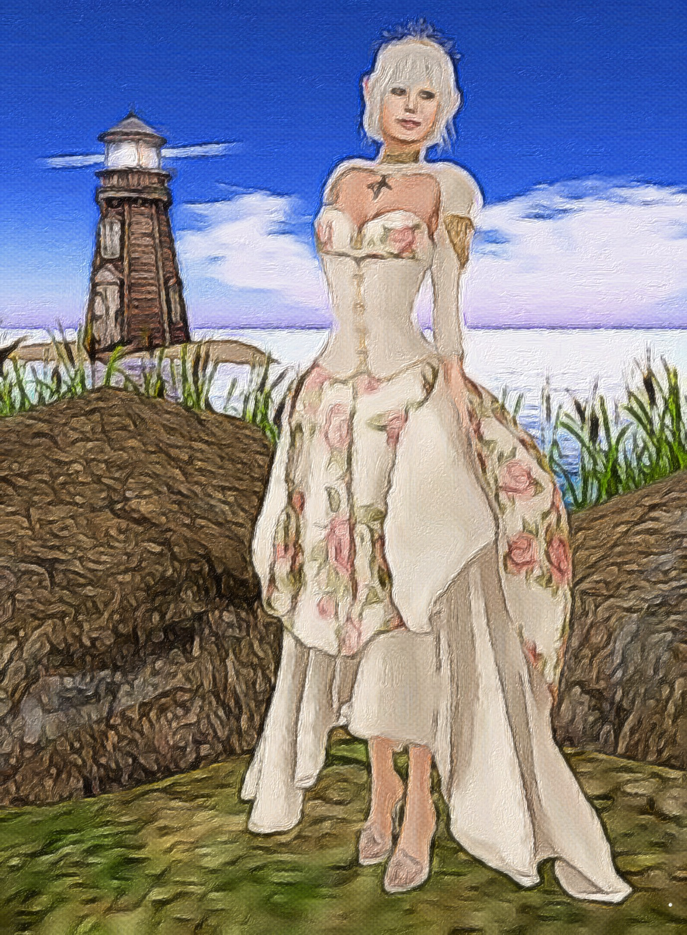I took an artist, realm-hopped to a seaside place with lovely views, and had him sketch me in various styles of wedding dresses.