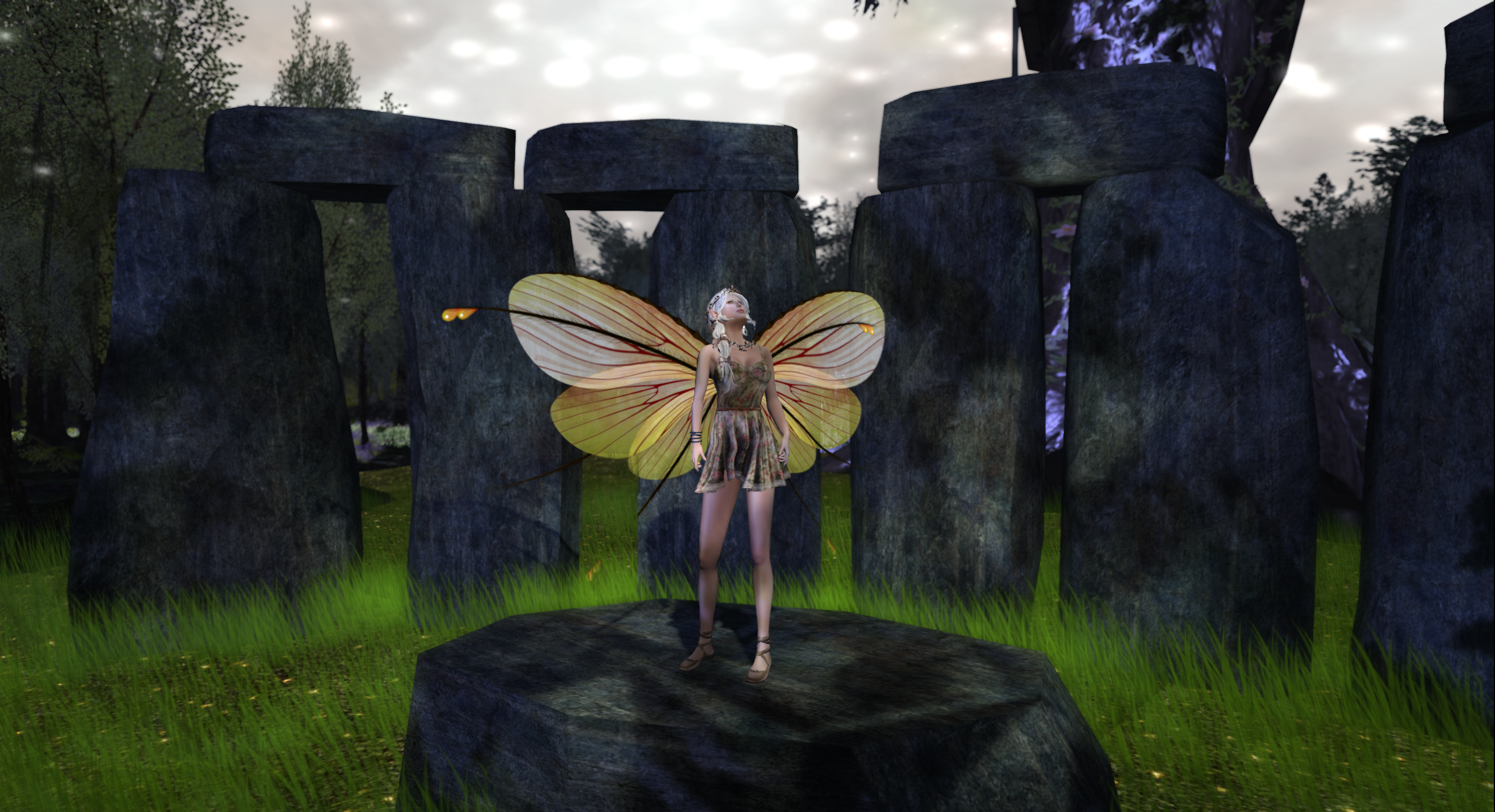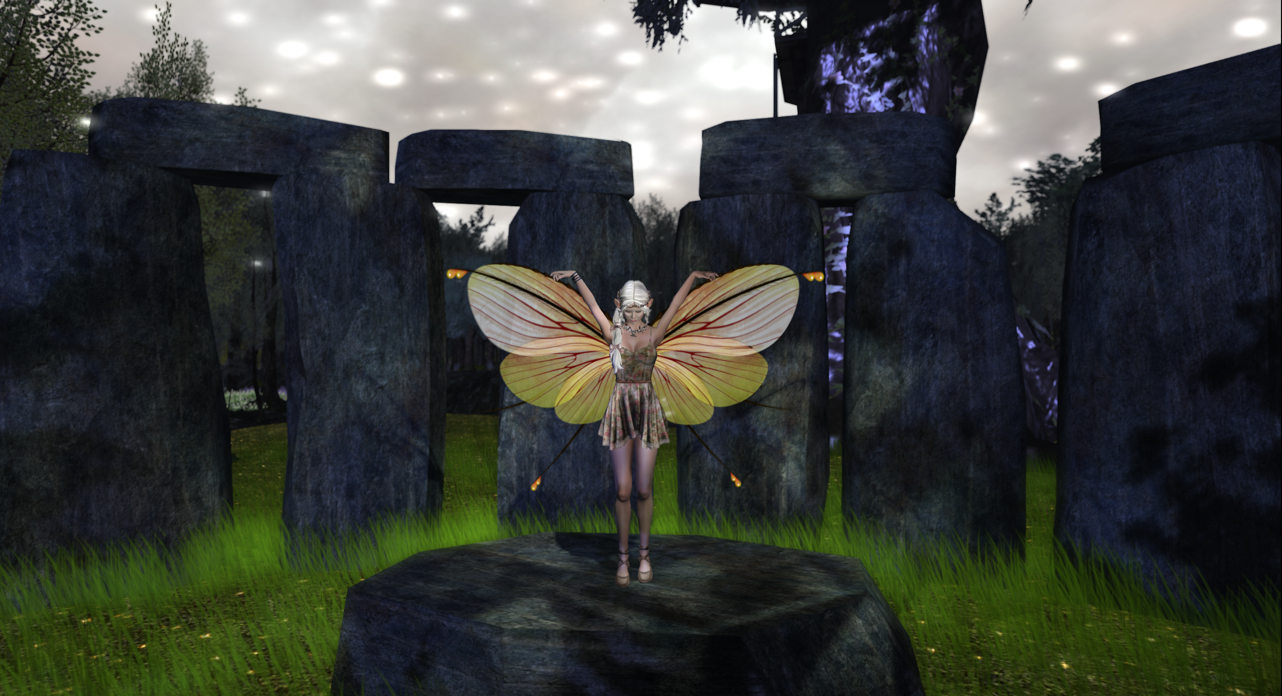 The beautiful new wings Gwyneth is wearing are the newest from Faeline. They’re called Sayuri, and they come in five colours. This is Apple. Faeline were the first SL wings I ever spent money on, and I recommend them and enjoy them and go back to them again and again.