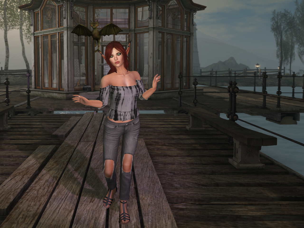 He is so lovely! And he settles on my shoulder and hovers just above me most of the time. I’m calling him Kermit. I don’t know why: it just seemed like a nice name for a dragon.
