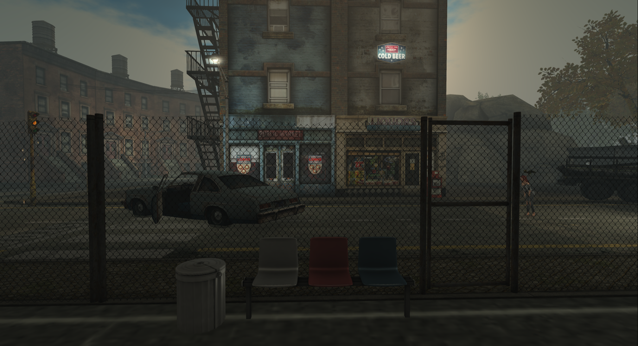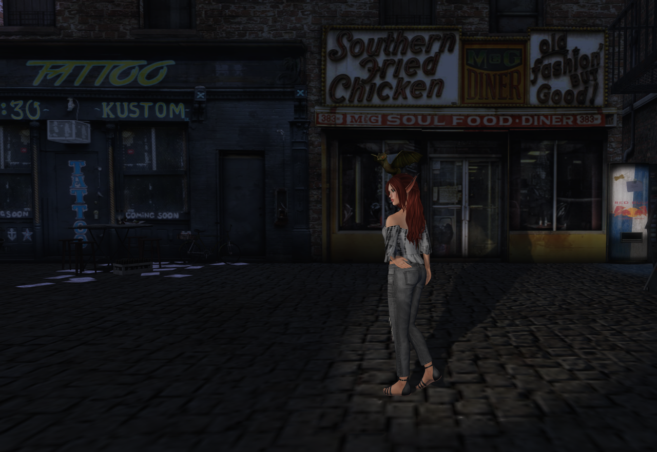 Then I turned and noticed that the tattoo shop was closed too. In fact, it looked abandoned. Deserted. I walked back to the chicken shop and found grime on the windows and everything inside was in disarray, stuff strewn about on the floor, chairs and tables knocked over. How strange.