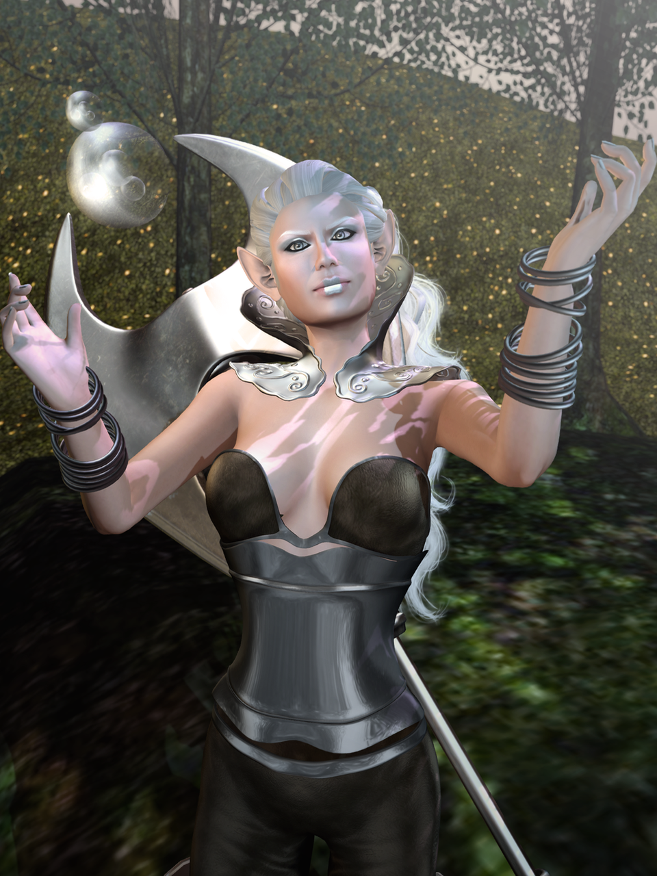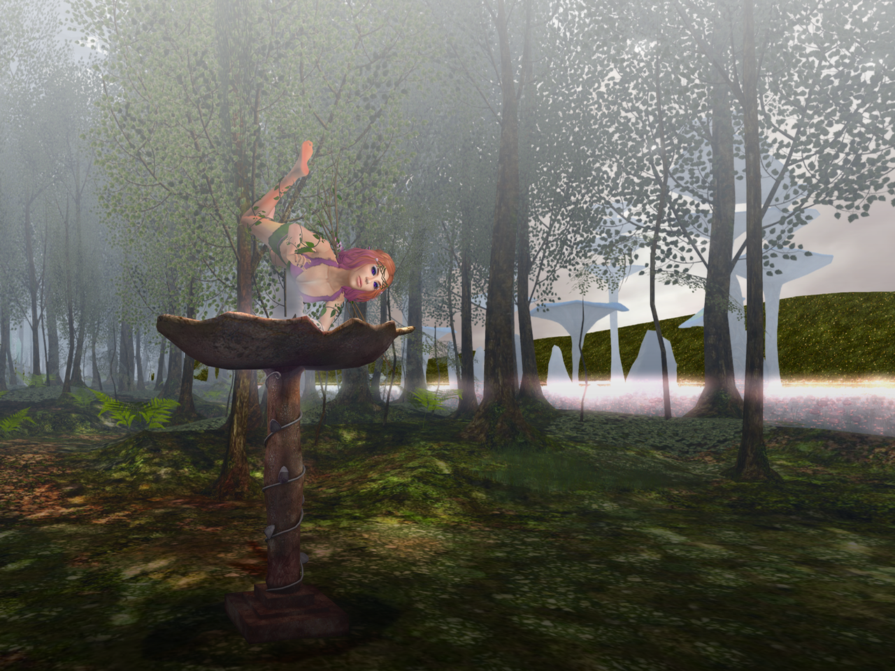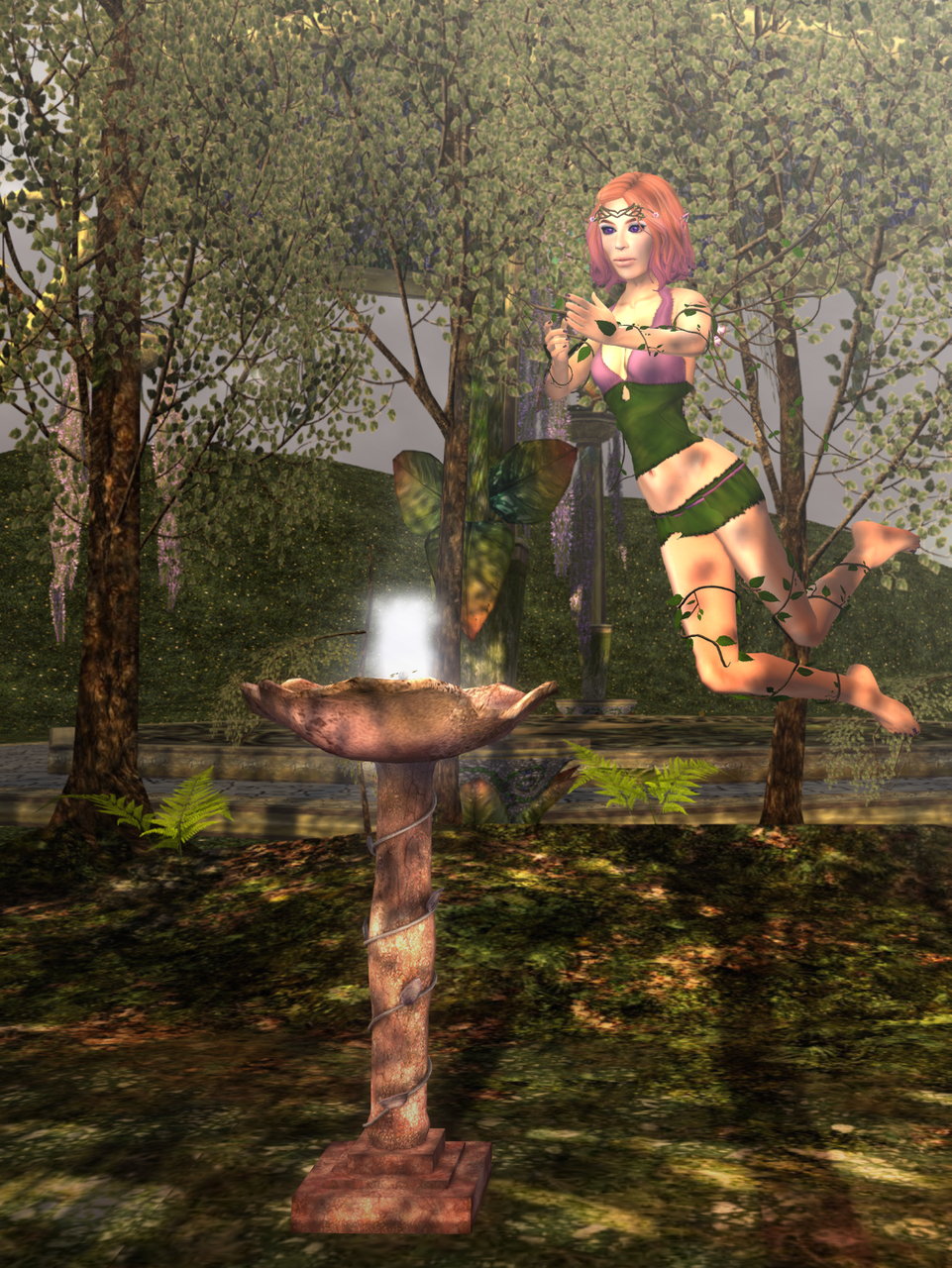 Here’s Callista, working on cleaning a nectar pool for the demifae. Some of them have volunteered to do some pretty heavy work, like suspending the nets some of our decorations are hung from, so these little nectar pools are being put all over the forest: that way none of the demifae have to go very far to refresh themselves. I may really keep some of them up permanently.