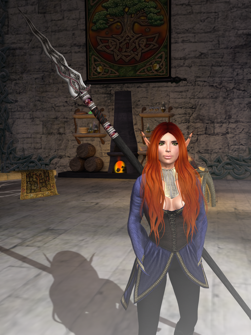 There was something else in that direction, though: a different kind of mist than we have here, the sort that burns off in the morning and makes you wet through to whatever you’re wearing beneath your —wait. My armour changed, too. Well, this couldn’t be good, even if the armour was, wow. Well fitting and perfectly coloured for my skin, and leaves in my hair, a long tunic with just the right amount of sway…. and comfy boots, my goddess, comfy boots.