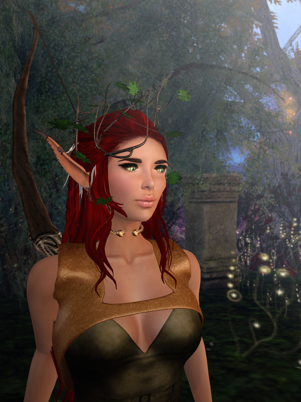 I was out roaming in the Unseelie Forest, as you do. And I felt something, something shimmering just out of reach. As, you know, you do. I was glad I had my new bow on me: I managed to sneak away to this faire held by the Fantasy Collective, and I couldn’t resist it. My new armour comes from there as well.