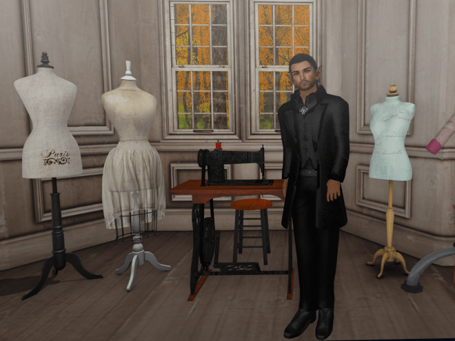 “Goth wedding,” she replied. “Bride’s worried the men won’t come in proper attire, so she wants a bunch of these made up in standard sizes for guests to change in to when they arrive.” She laughed from the kitchen; I could hear the old-fashioned stovetop kettle begin to boil, but she was back in the parlour, measuring my inseam and that, before the tea could have been poured up. “Ah, there we go. Just a couple of alterations and it should be perfect.” She eyed me from top to bottom. “I knew I’d find the right size man down the gypsy camp. Now you try on this next one and I’ll get back to that tea.”