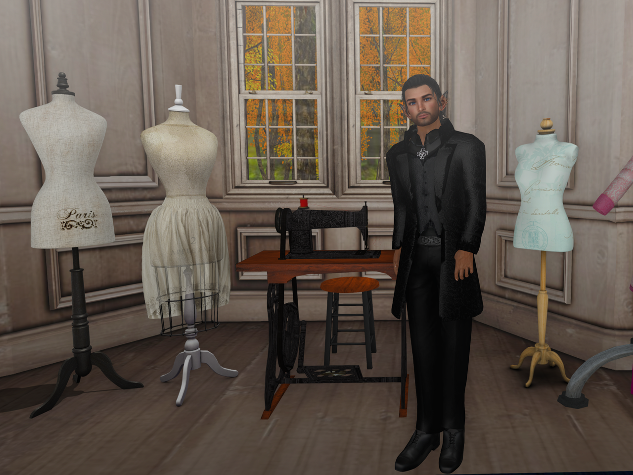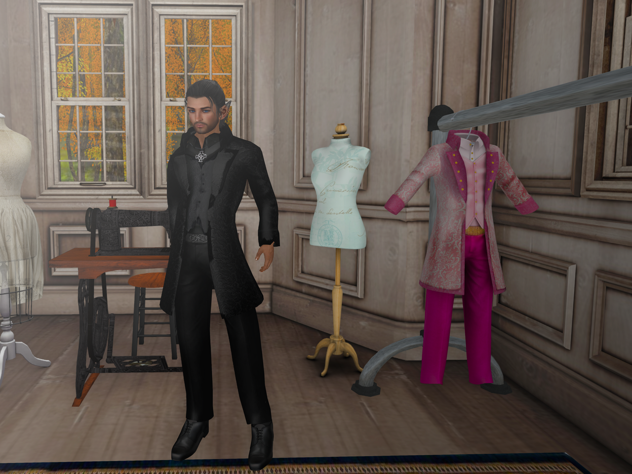 “Oh, now I don’t think this one needs any alteration at all,” she said as she returned to the parlour with two cups of what smelled like good black tea. She set them both down on the one uncluttered surface in the room, the old-fashioned treadle sewing machine. “I know, I know, cher,” she said when she caught me looking at it. “It’s old, but nothing sews as straight or as pretty a seam, and tailoring’s loving work: everything’s got to look perfect, at least to me it does.”
