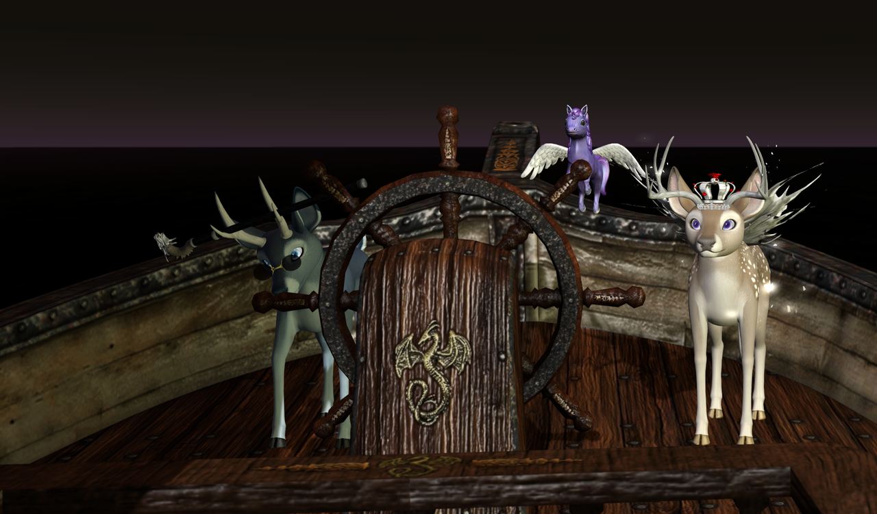 Here’s DyisiDeer, KitoriDeer, and MoxyDeer enjoying an awkward family picnic photograph. Well. I think MoxyDeer’s unicorn was enjoying it—look at that cheeky goat plying her with food! MoxyDeer and DyisiDeer both look a little nervous, if you ask me. KitoriDeer, on the other hand, looks as if she might be explaining, in detail, how to eviscerate fellow deer and devour their livers.