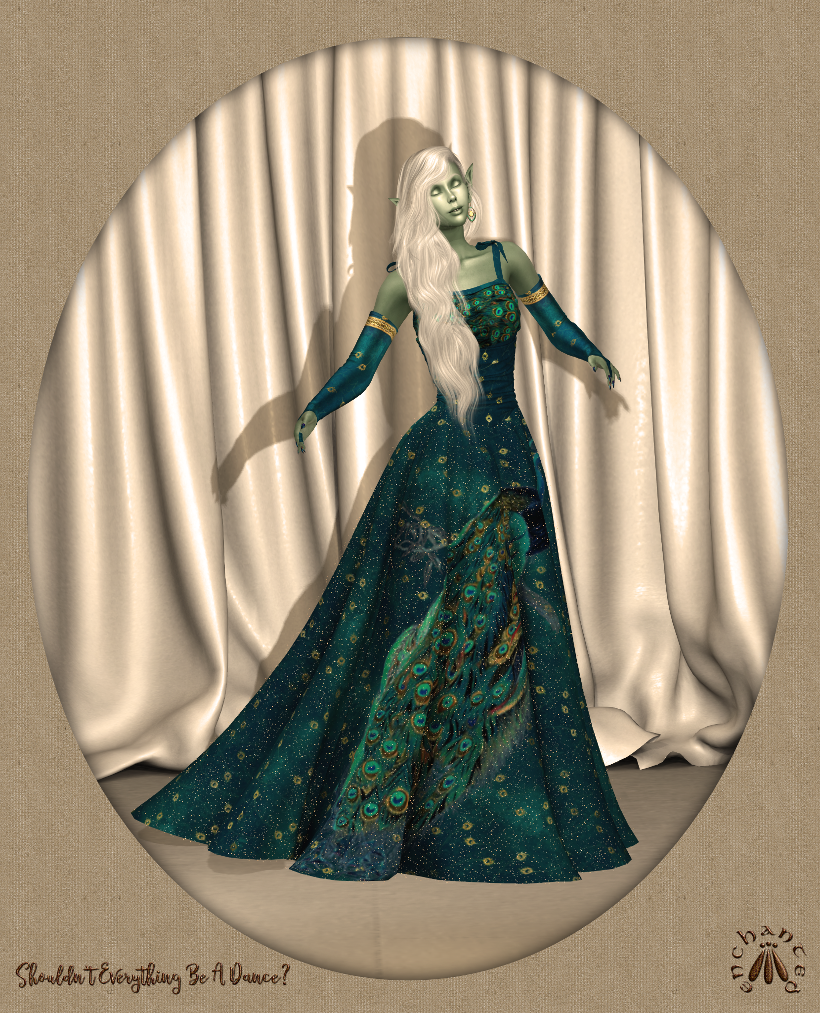 But then, Sharni Azalea makes a gown like this, and you realise that Wyrd Witch could paint a skin so perfectly to go with it…and suddenly it doesn’t matter that you were trying to ease into the Party Quarter, such as it is, and you can’t resist trying on half a dozen different hairstyles, makeup changes, and the first party of the season becomes the same sort of goal that it would be if it were the only party of the season, all thanks to the amazing and talented designers you’re proud to know.