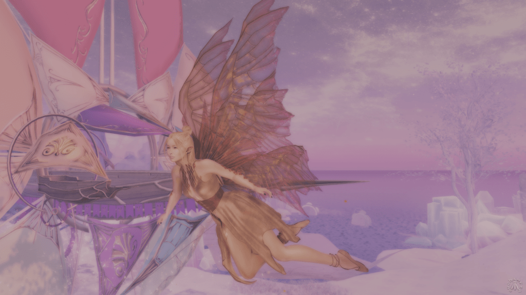 Here I am flying up to my airship, the Fairechilde! Ok, it isn’t really my airship and mostly I am not meant to go there at all because it’s full of grown up parties, but I did anyway, so there!