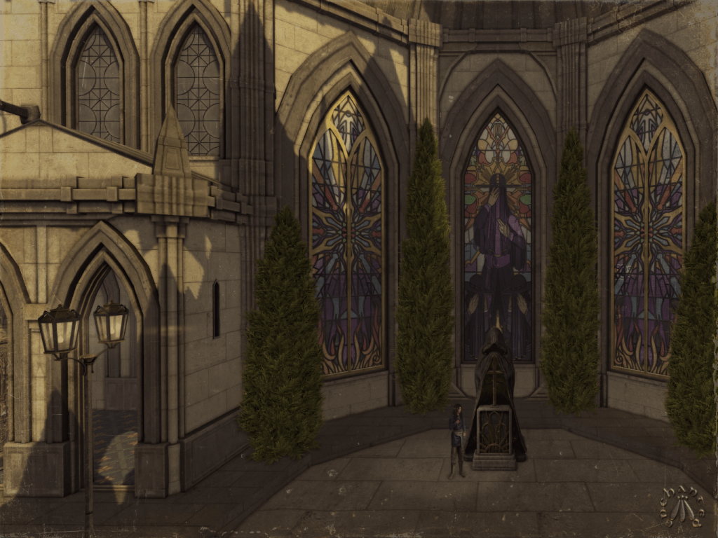 That’s how I’ll remember her: not because of the fabled angel, or the shopping, or even the stained glass oddities. I’ll remember how, from one of the tallest spires in the lower city, I almost loved Somniatoris Arx, even though I knew that no matter what fine clothing I found, or what friends I made, I’d forever be an alien if I chose to stay.