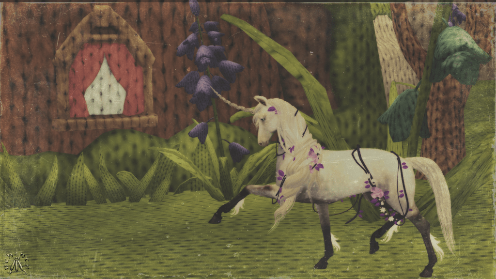 One afternoon I was preparing to make the journey from Isles of Tarrin down into Featherfall, and in an unholy coincidence, that horrible Cherish Gelato from Faewatch spotted me. It was easy enough to duck into a convenient shop, change into the unicorn, and continue my journey. There are, after all, so many horses and horse relatives in Isles of Tarrin that eluding a pursuer as a horse or horse relative would seem the simplest solution—and so it was.
