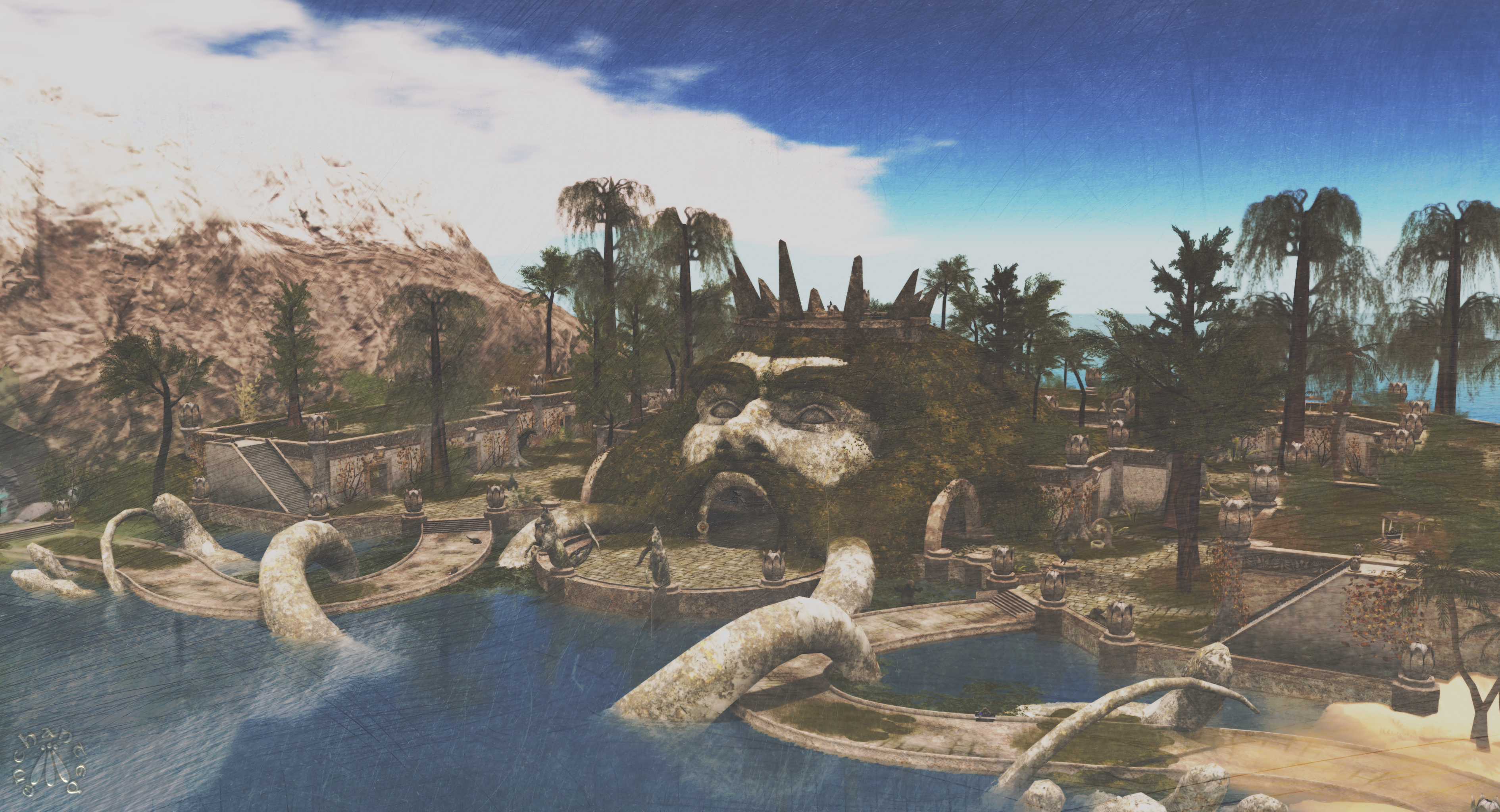 And, if you were tenacious enough to climb to the top of the mer-king’s head (and not make jokes about how every pub in London that isn’t called The Queen’s Head is called The King’s Head), you got an amazing view of neighbouring Open, with a glimpse of Mythspire Ridge int he distance.