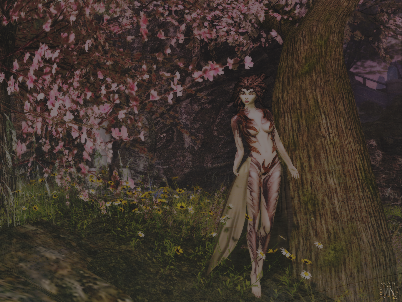 At that moment, I heard the pink flower tree call to me. He offered me safety and contentedness. How many dryads, I wondered, had been convinced to choose a tree under stress or duress? I could hear the hoofbeats. When I reached out, I could feel sweet sap warm to my touch. Oh, it would be all right. Here was a beautiful tree, in a beautiful place. I could learn to love him in time. I knew I could. And it is so easy, you know, for a dryad to become one with a tree. Not so easy to separate oneself: if you leave, he dies, if he dies, you die: it’s a struggle, but if the alternative is death, well. I caressed his bard with my fingertips.