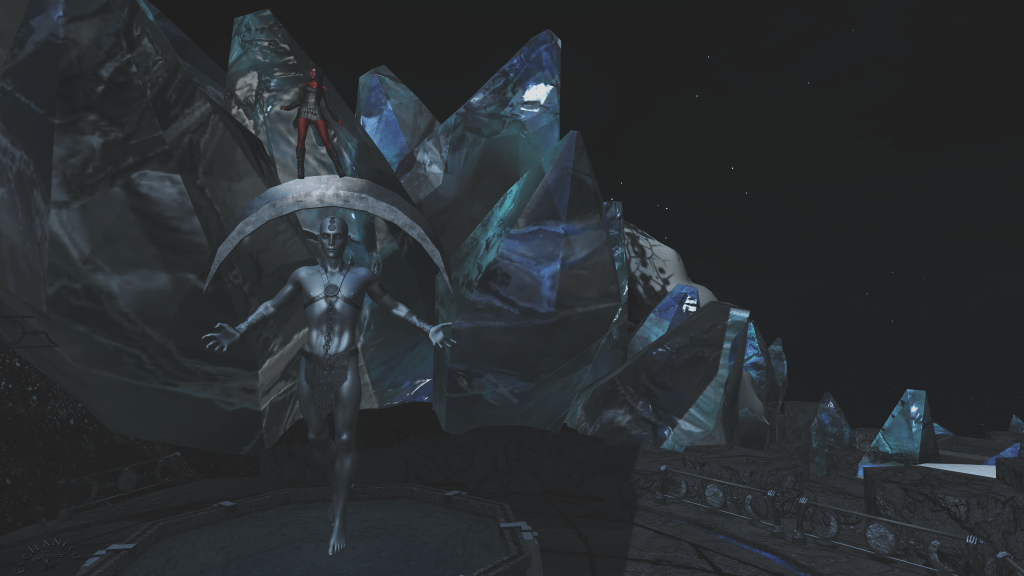 Some folk think Dingir is creepy. Some folk think Dingir is uplifting. I just kinda wanted to blow off some steam, so I … disrespected public property. Yeah. Good thing TAC wasn’t around; she’d have carted me off to Detention for sure. Honestly, I love Dingir. It is full of these gorgeous crystals, and everything here looks like an art installation. Gwyneth would know the right name for it, but I just know it’s decorative.