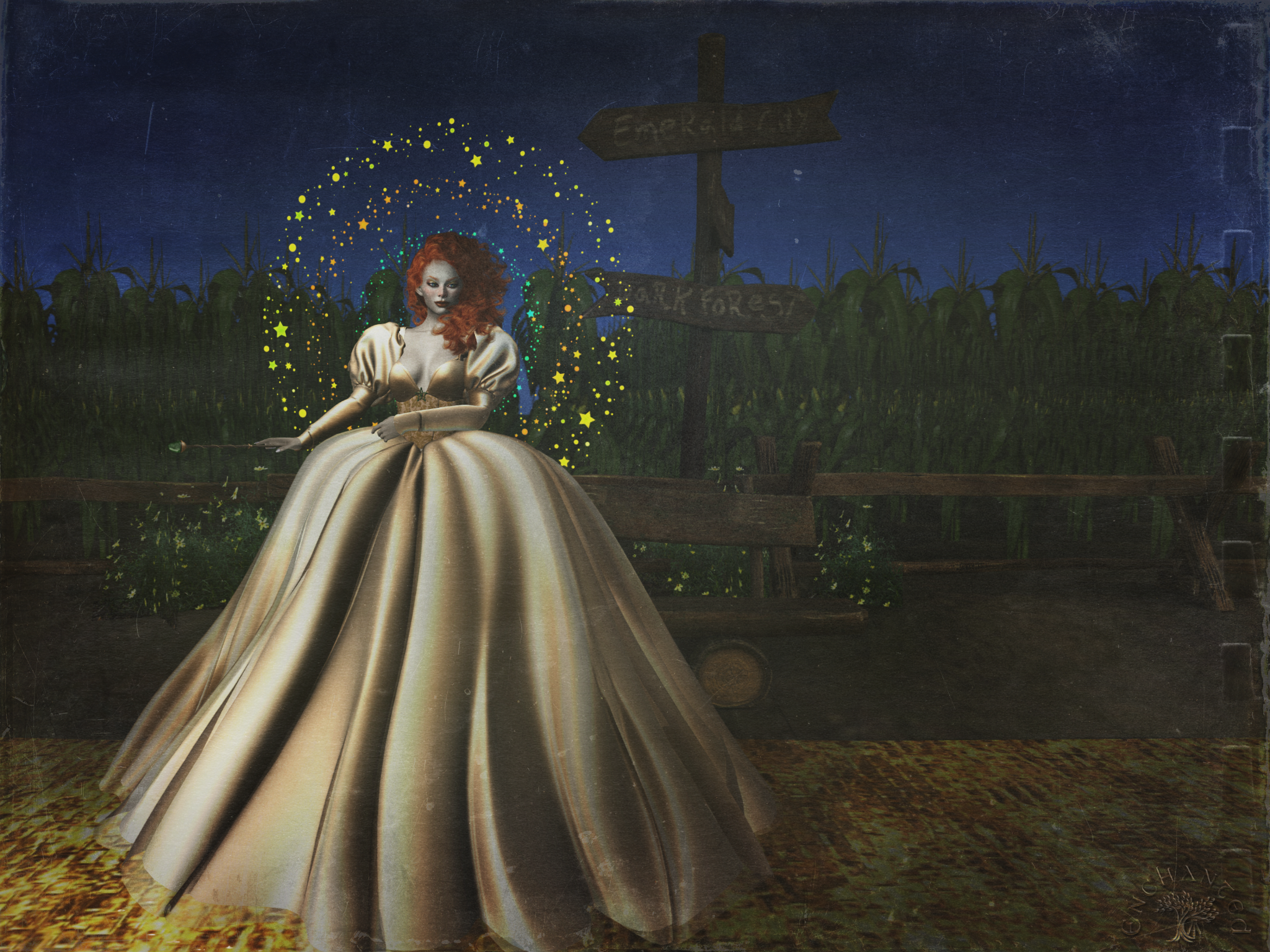 - Glinda the Not-So-Good Witch is styled on a Maitreya Mesh Body and a Lelutka EvoX Xia head.