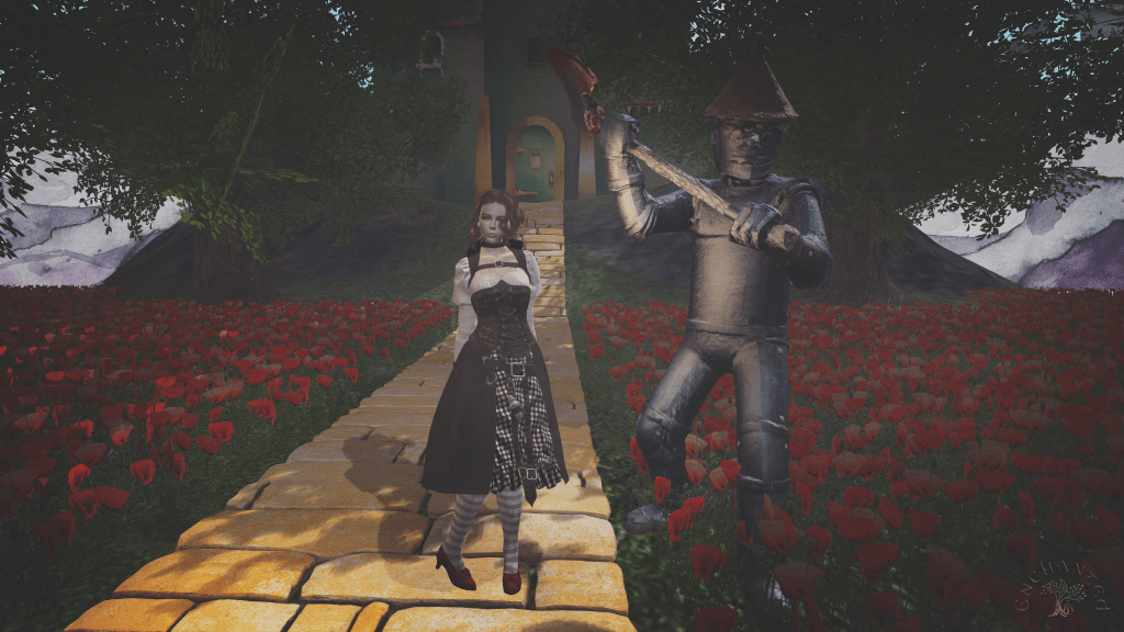 This Tin Man wasn’t super talkative. I presumed this was because he wasn’t actually alive. He wasn’t rusted stiff: he was actually a statue. Well, all right. What we had here, I surmised, was a post-Dorothy Oz, where some of the characters had been immortalised. Fine; I could deal with that, as long as there were no deadly surprises waiting around any given corner.