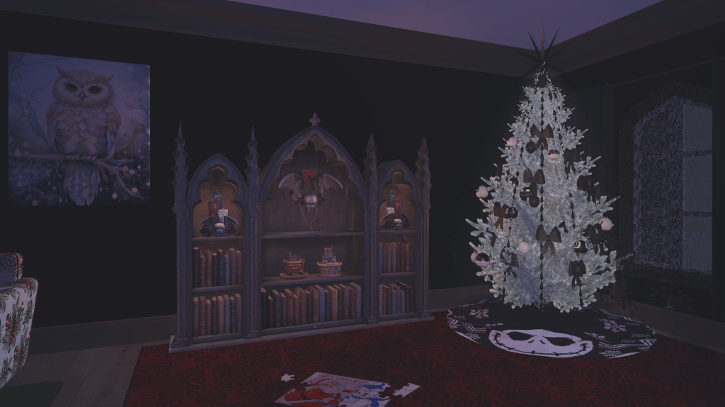 My gorgeous Skellington tree was created by Imagine Nation, and wherever I put it up, it never fails to get a reaction. I can never resist a big gothic bookshelf, and this one from Studio Craft has room for more beautiful Cthulhu candles and a smaller version of my garden wreath. And of course there’s a puzzle on the floor, in case people want to get down and play on the rug!