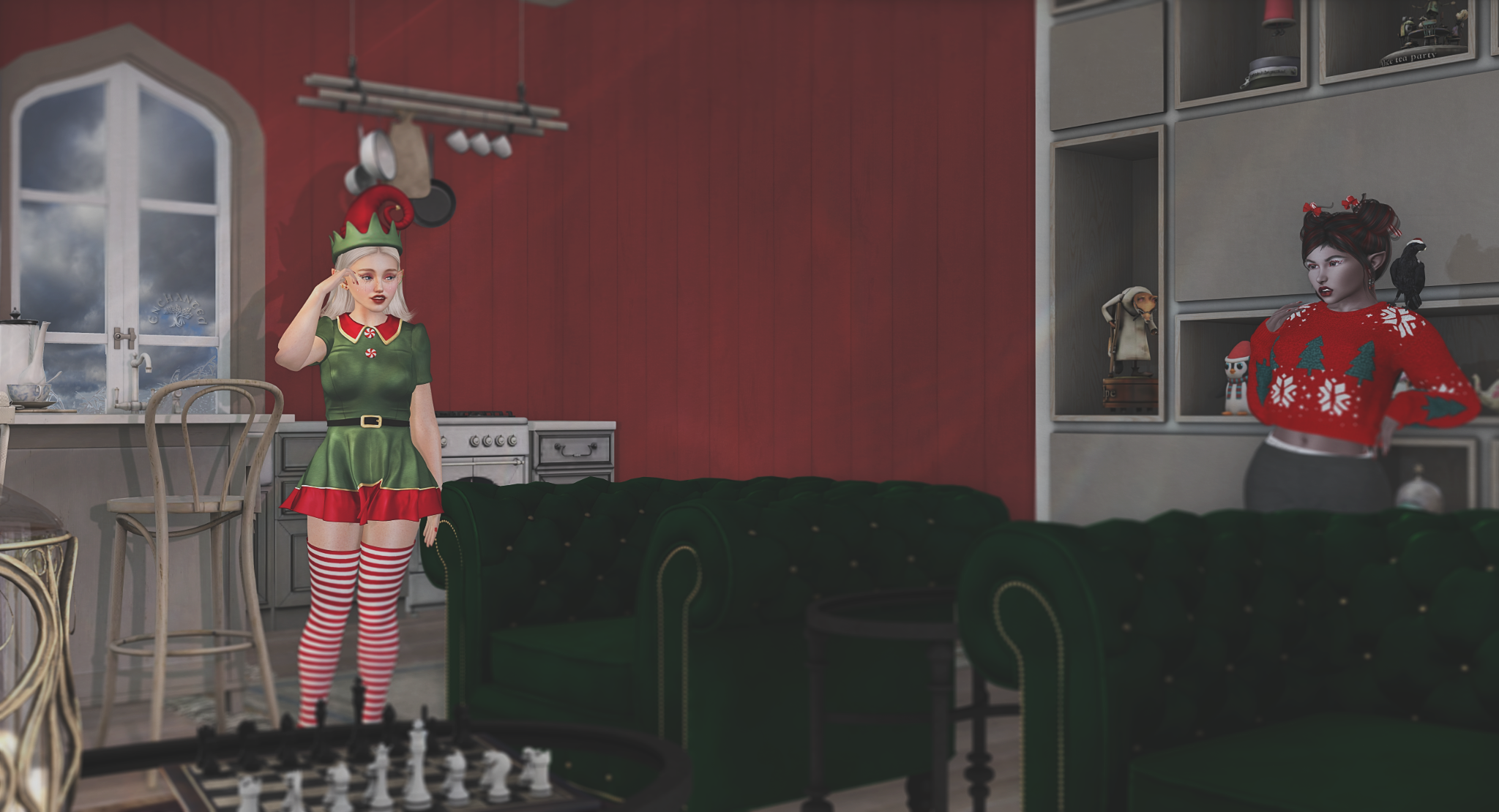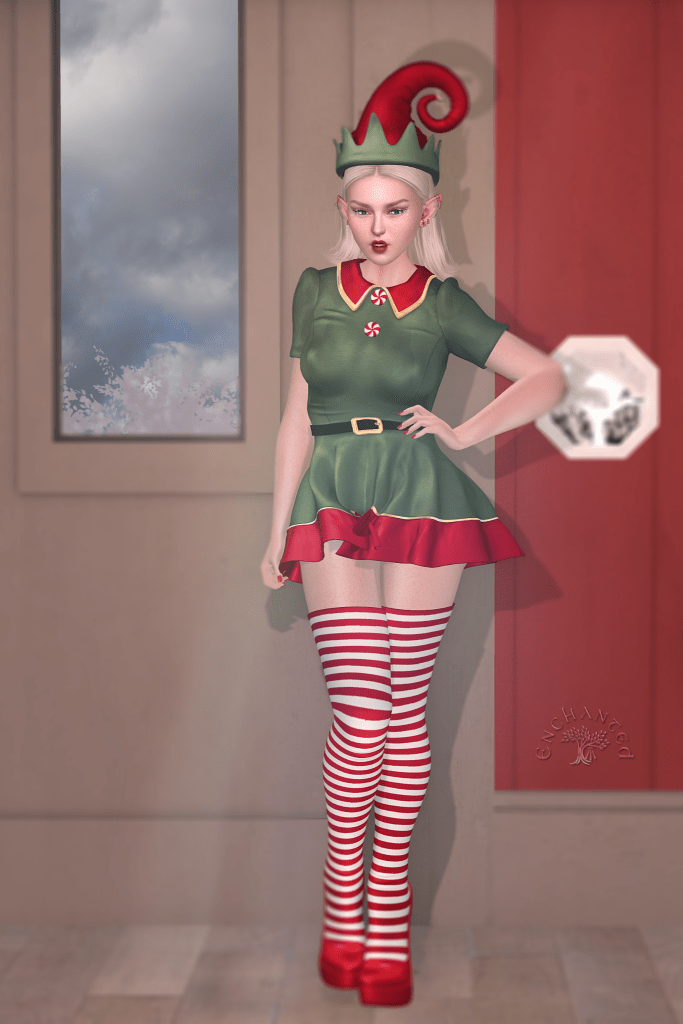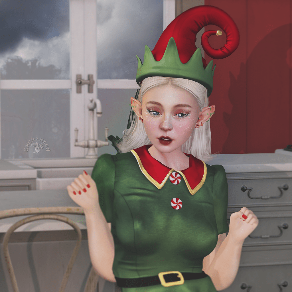 - Clothes: Kaithleen’s, Christmas Elf Dress, Hat, & Heels (This outfit is at the current round of Collabor88)
