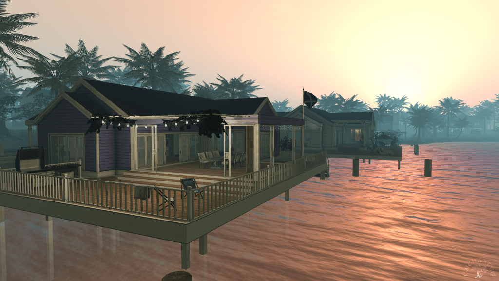 And, that’s when I packed the whole treehouse up and joined the current Game Of Homes round. I decided to throw in on the most different place I could think of to Fantasseria, and so I went for a stilt home!