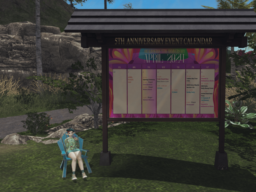 … by which I mean, I got an ice cream (a magical ice cream!), grabbed this lawn chair (it’s FREE from Warm Animations!), dragged it down to the edge of the event grounds where the Big Sign is, and now I’m having myself a feast!