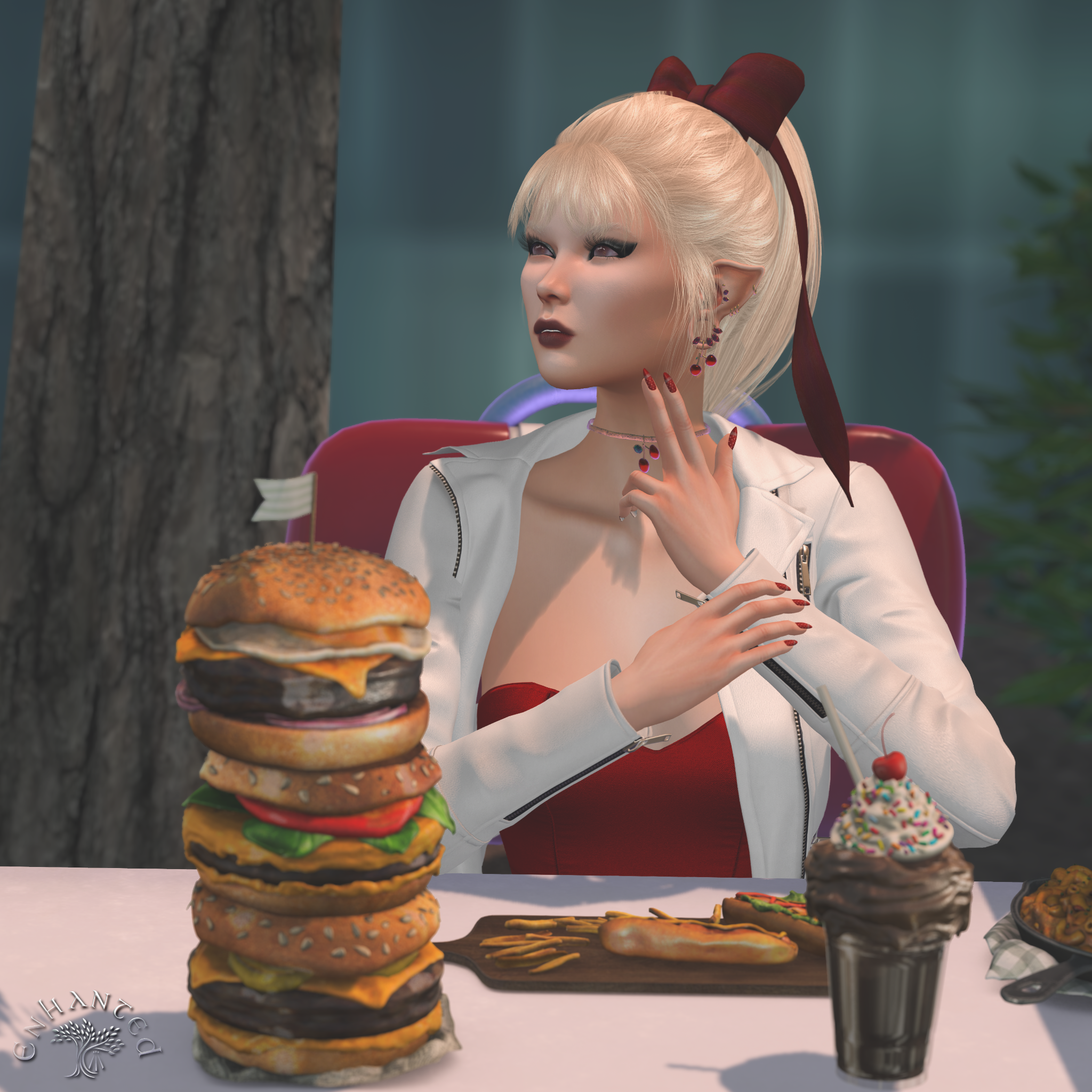 I think that faerie chick likes me. You know, I really think she likes me. And you know what they say about fae chicks, right? Maybe I’ll ask Ronnie for her number when I call her. This shake is really good. Ooh, Ronnie left her plant burger! Chow time for Henry!